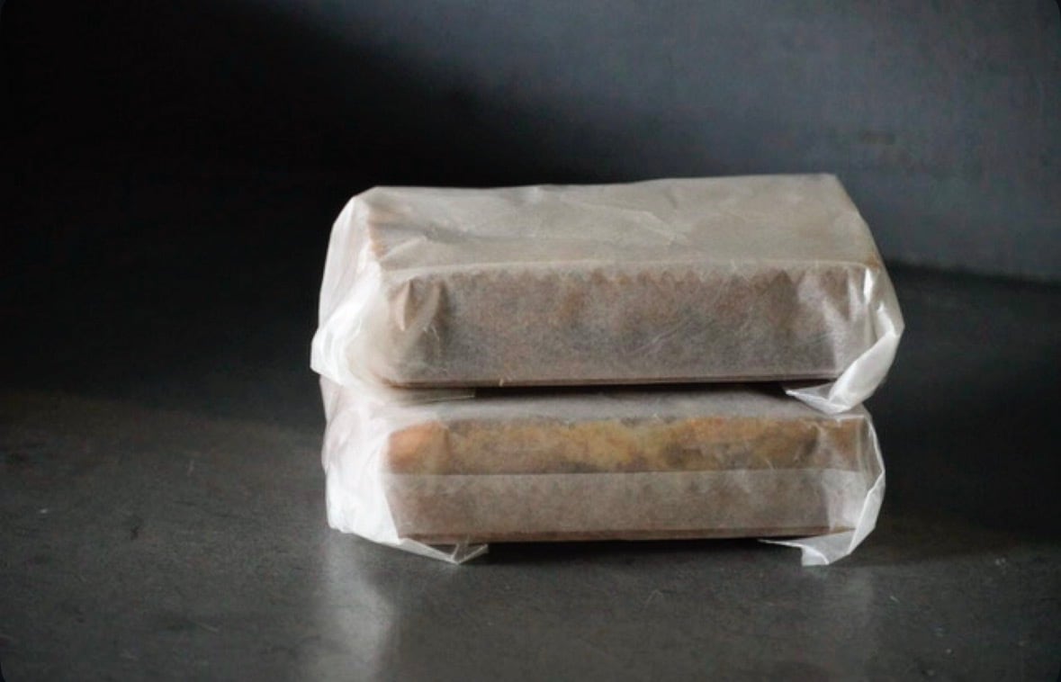 茶色のワックスペーパーに包んでいます。(写真1枚目参照)